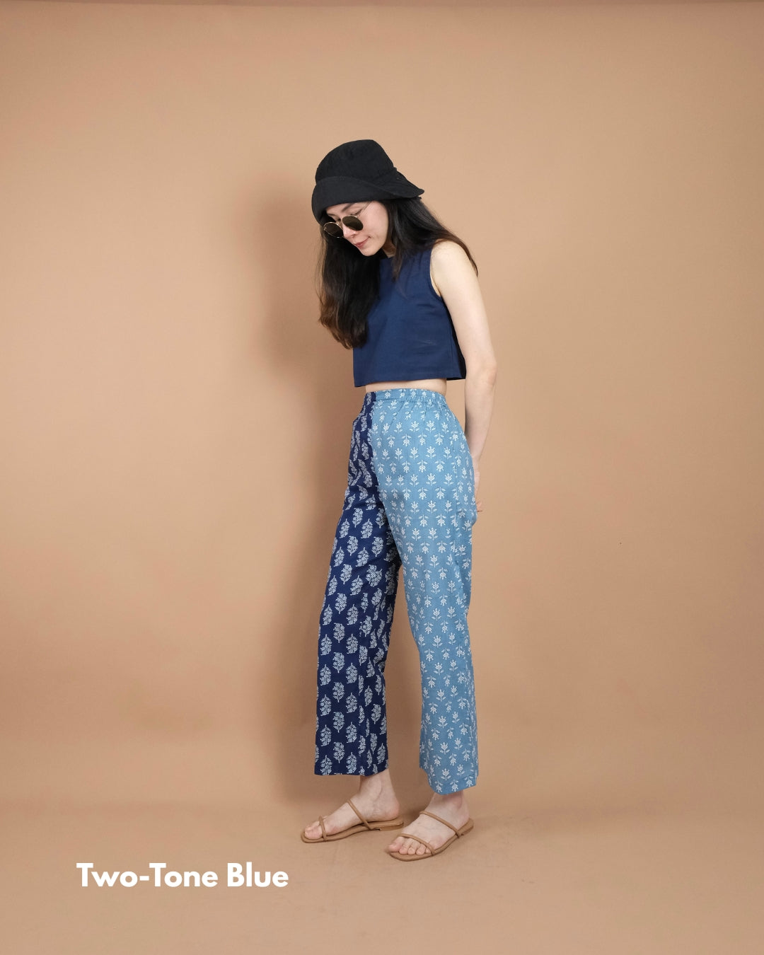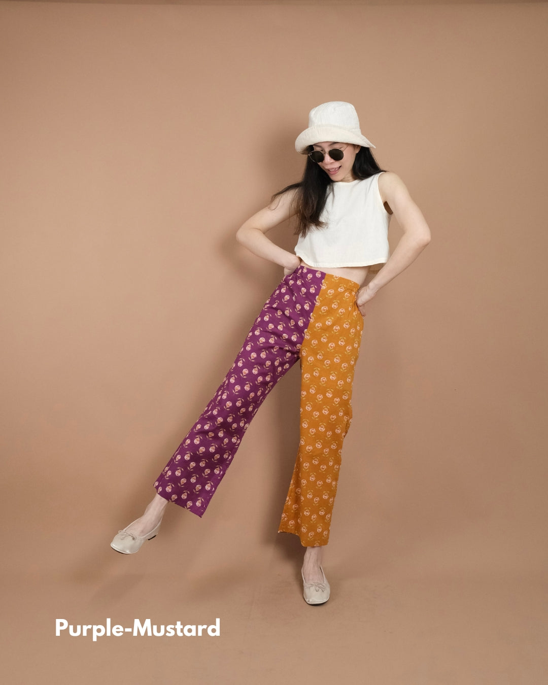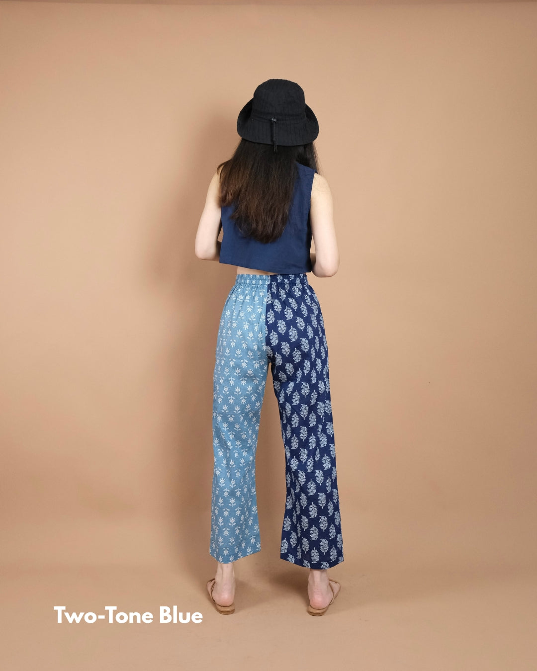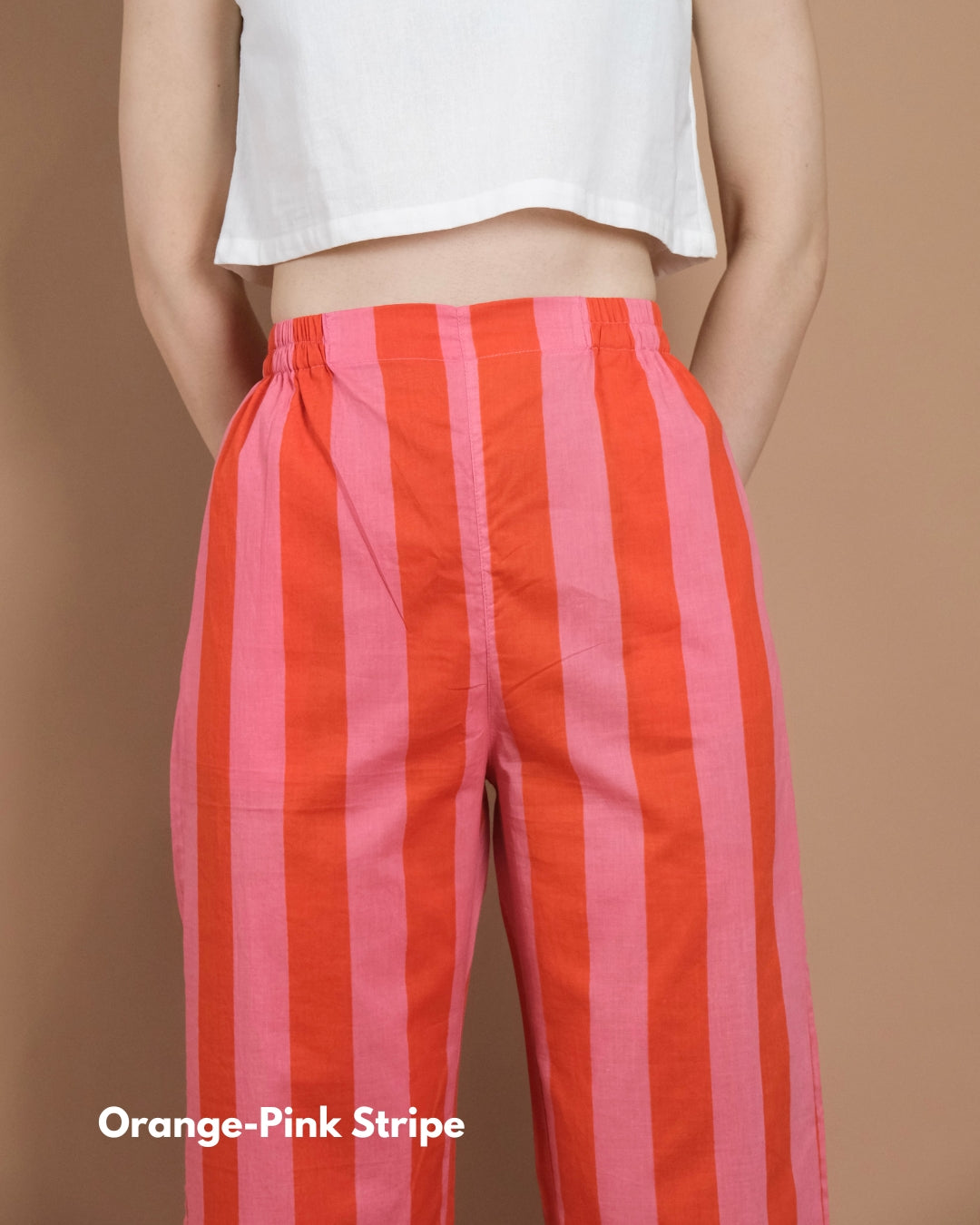 Elastic Waist Pants: smooth, comfy and breathable with Indian cotton on colorful pattern for your lovely sunny vacation day M - waist 24-38” hip 40” Length 37” L - waist 28-42” hip 44” Length 39” waist 29 and above recommend L Model Size 32”/25”/36” H. 173cm Wearing M