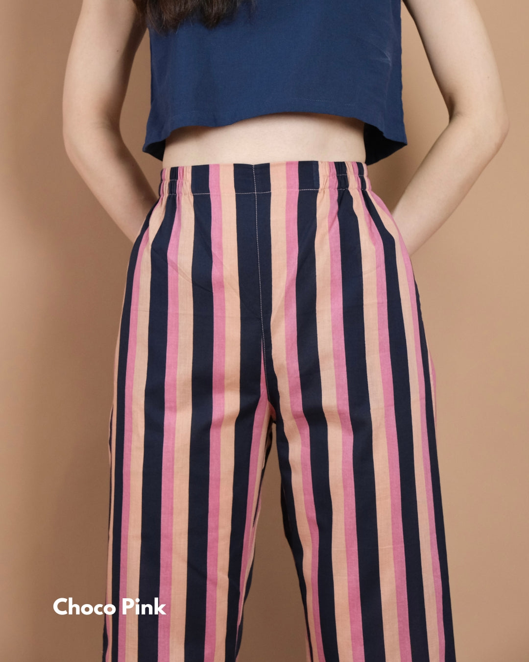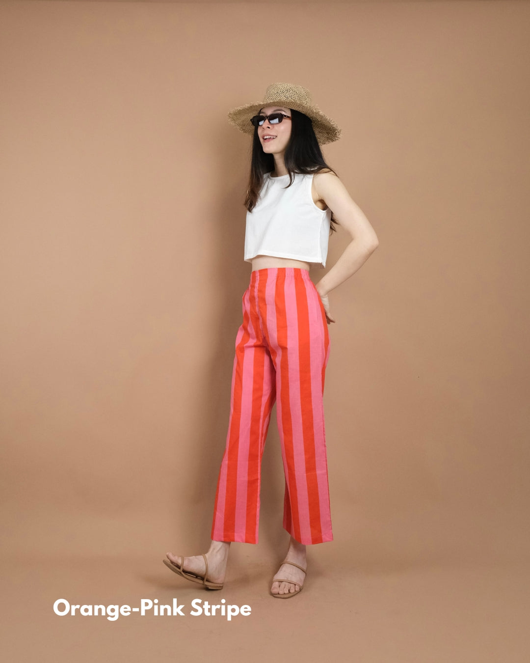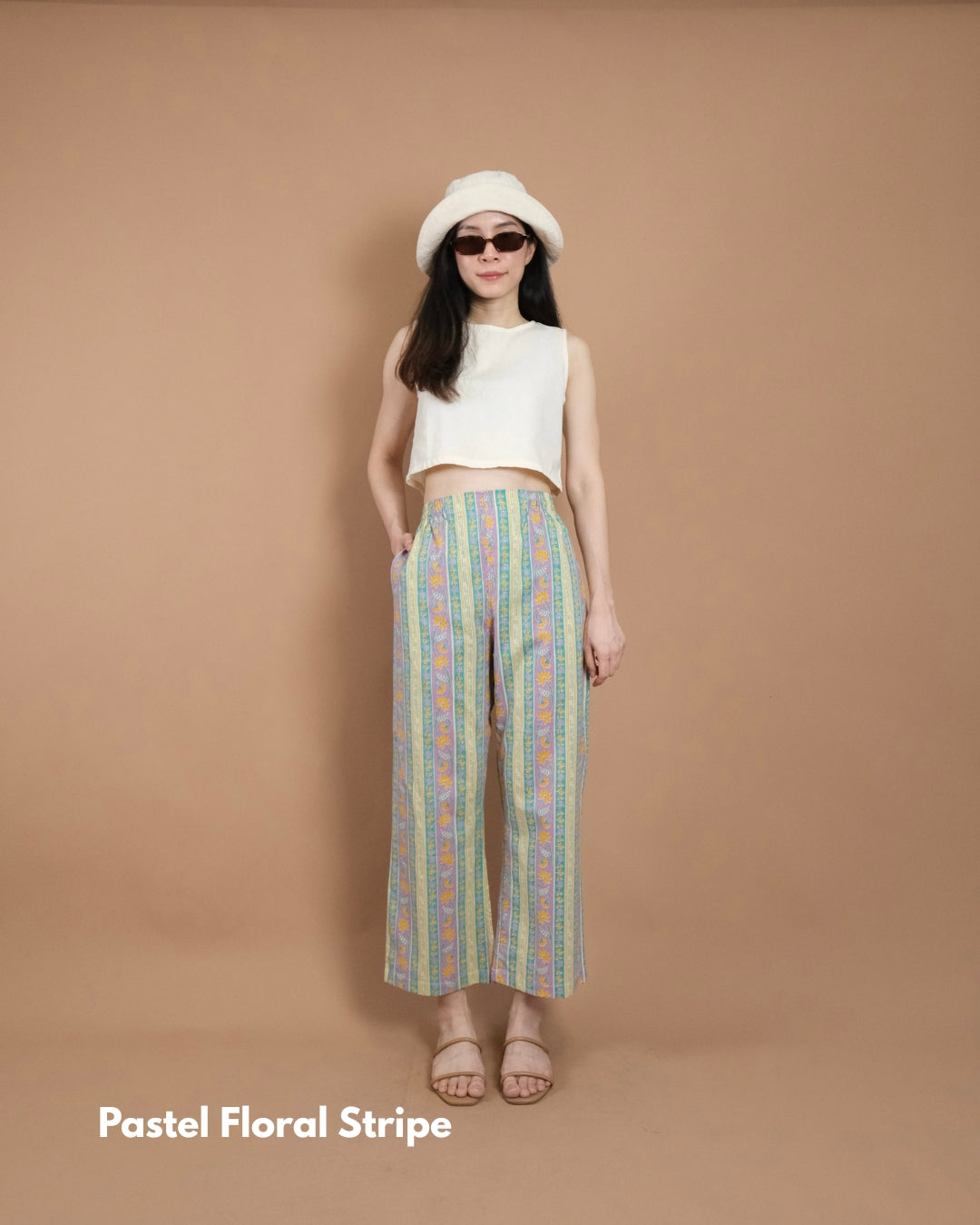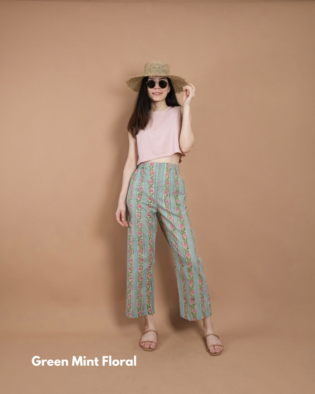 Elastic Waist Pants: smooth, comfy and breathable with Indian cotton on colorful pattern for your lovely sunny vacation day M - waist 24-38” hip 40” Length 37” L - waist 28-42” hip 44” Length 39” waist 29 and above recommend L Model Size 32”/25”/36” H. 173cm Wearing M