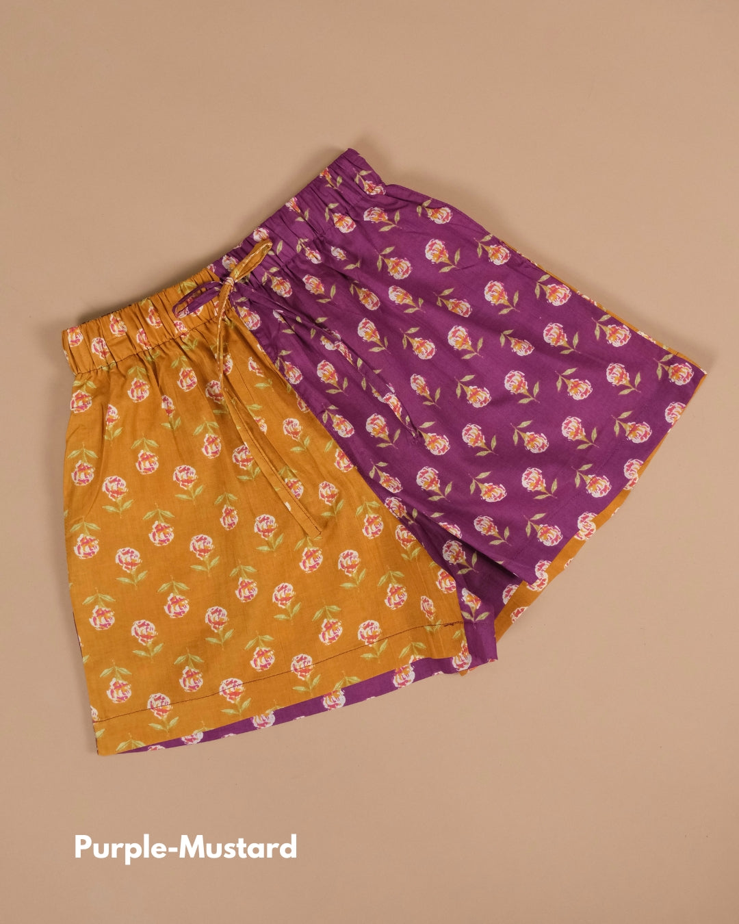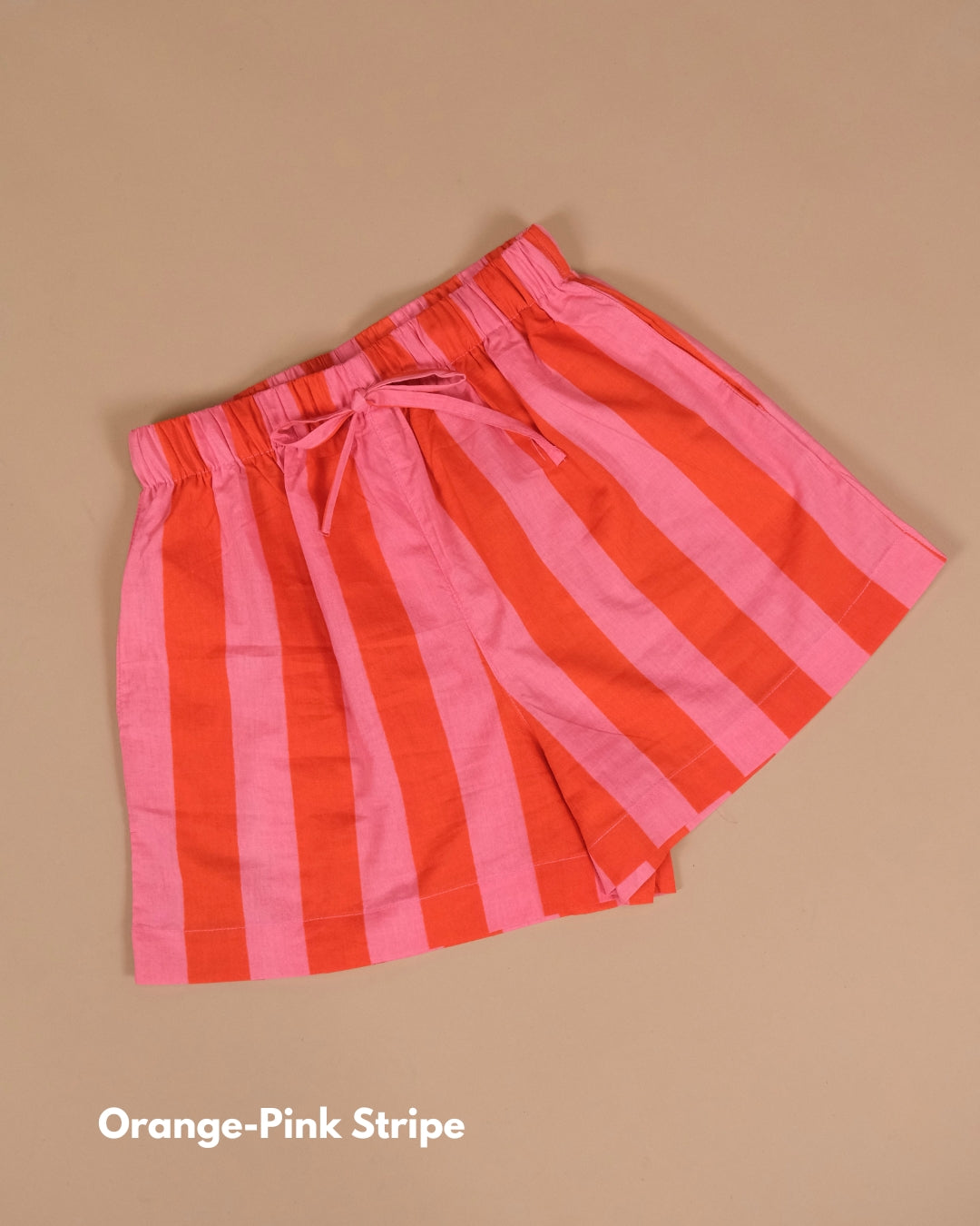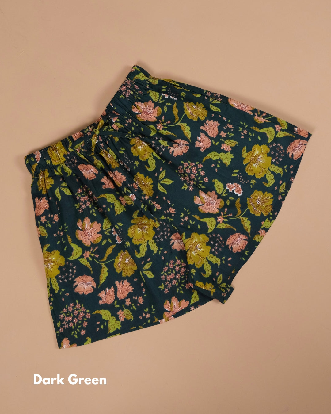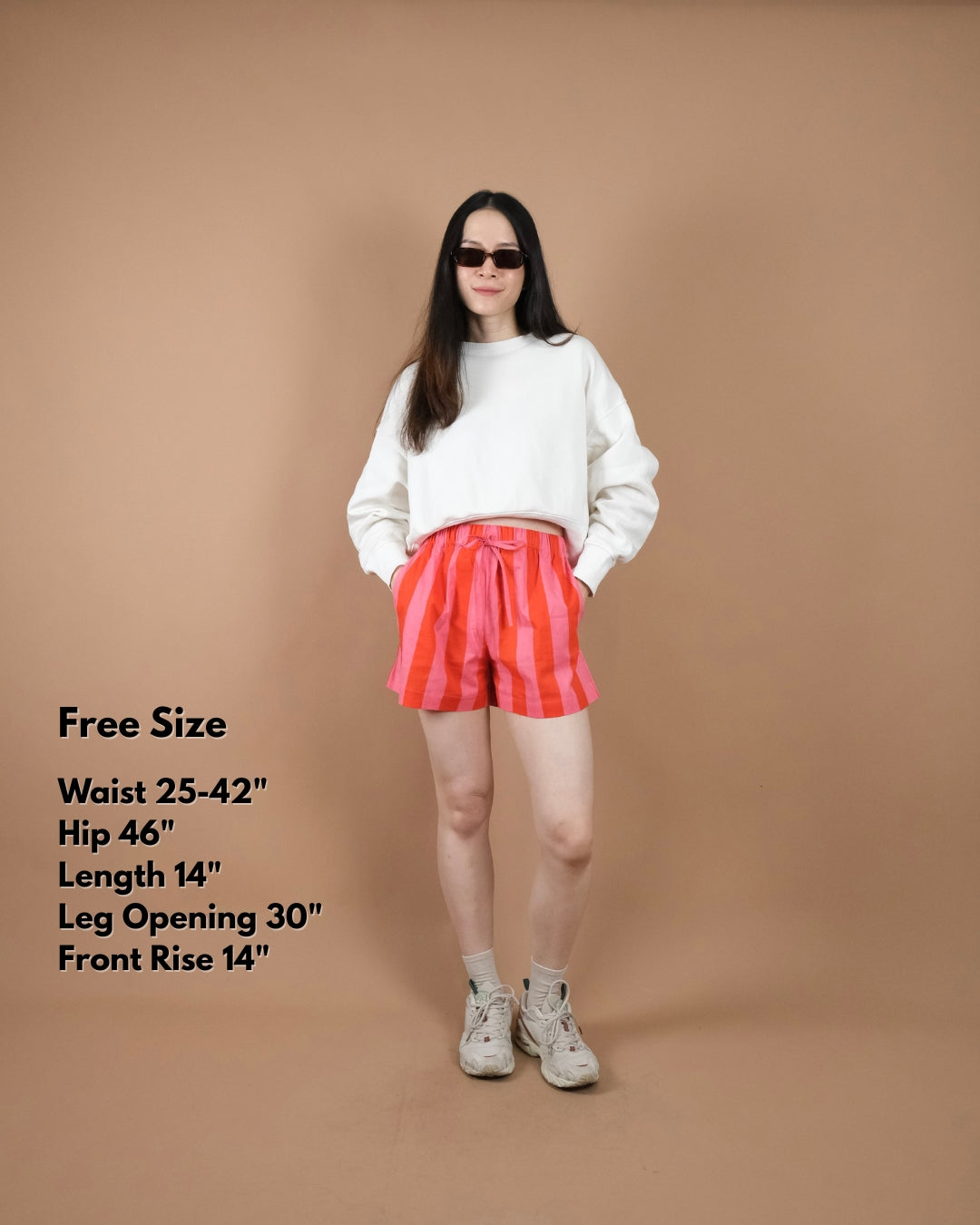 Elastic Waist Cotton Shorts with Side Pockets - Lightweight Breathable Indian Cotton Free Size Waist 25-42" Hip 46" Length 14" Leg Opening 30" Front Rise 14" Model Size 32”/25”/36” H.173cm