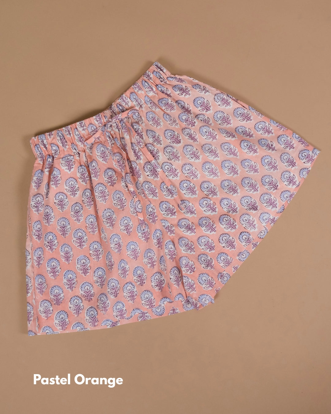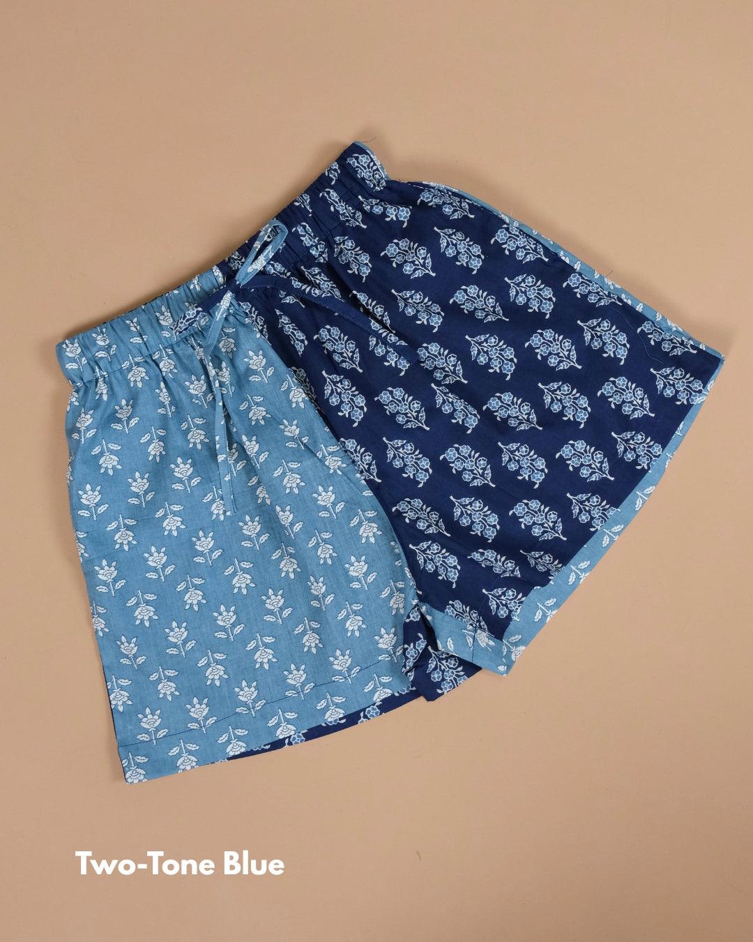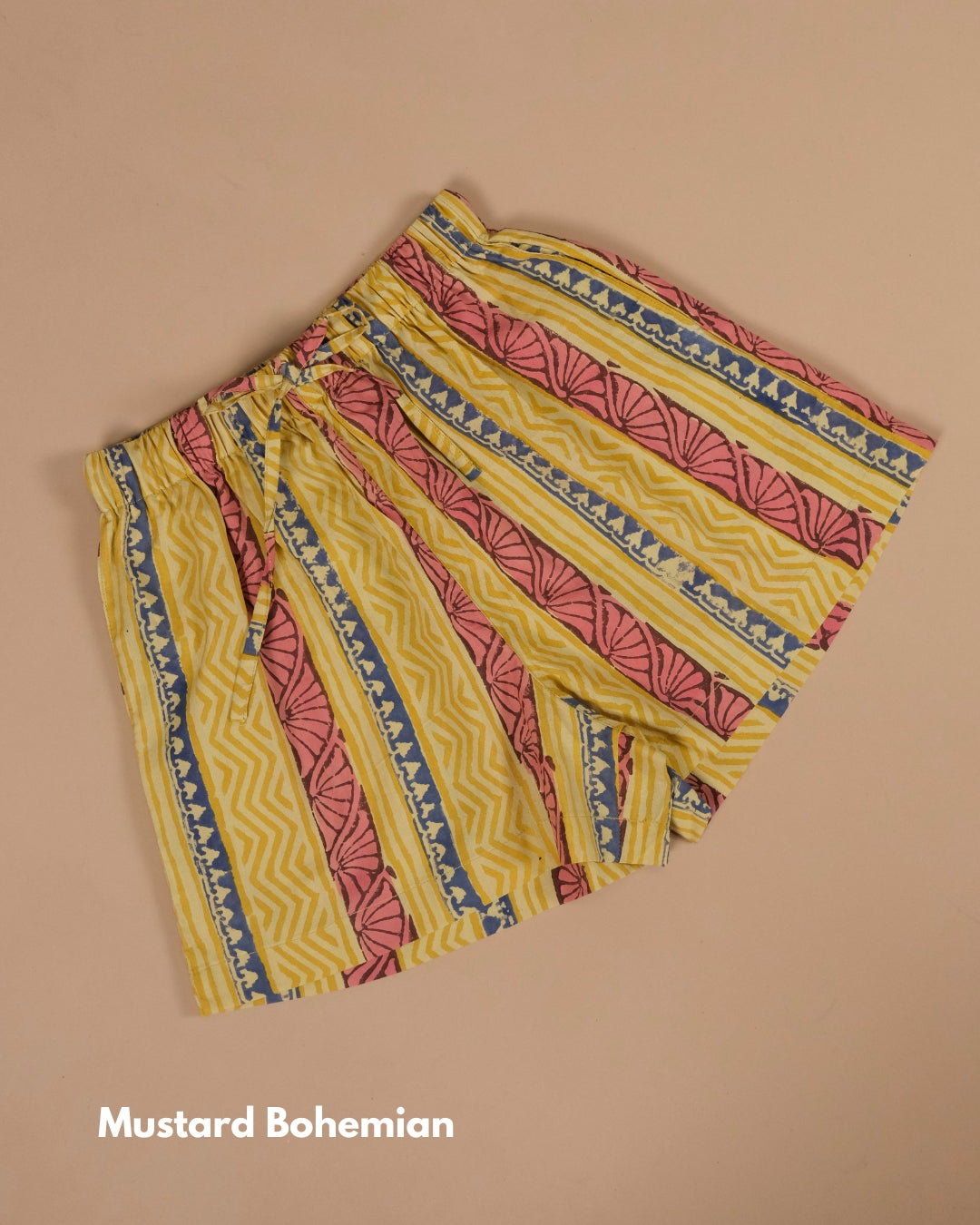 Elastic Waist Cotton Shorts with Side Pockets - Lightweight Breathable Indian Cotton Free Size Waist 25-42" Hip 46" Length 14" Leg Opening 30" Front Rise 14" Model Size 32”/25”/36” H.173cm