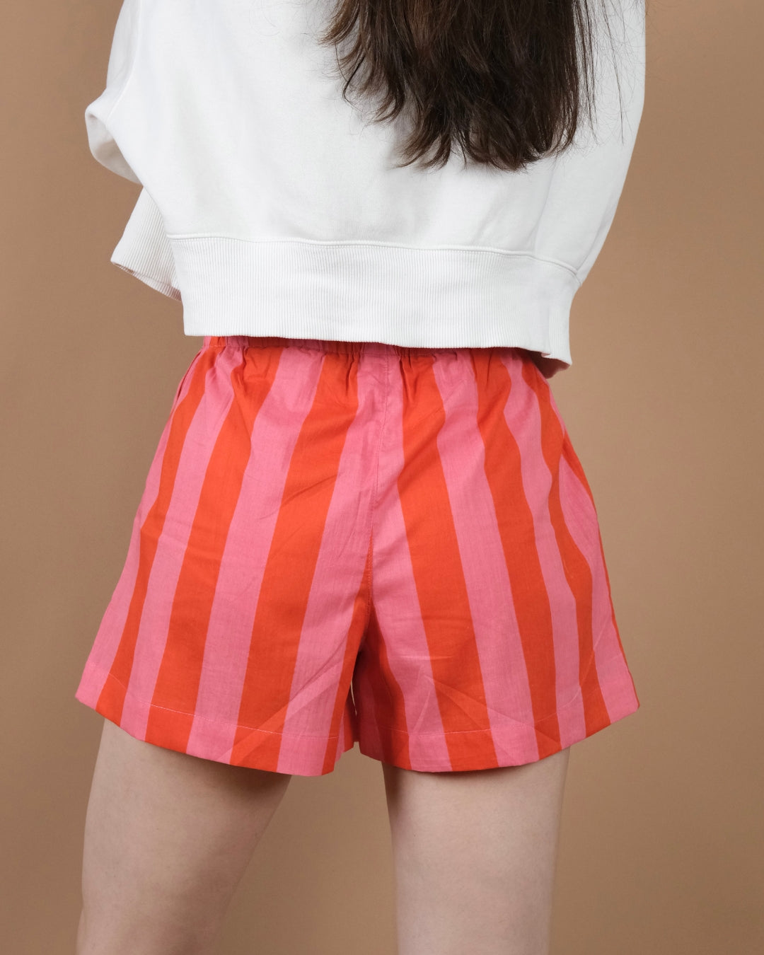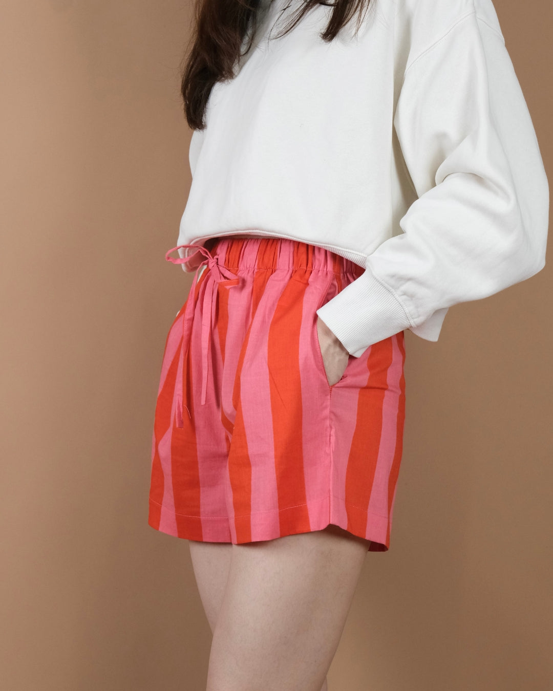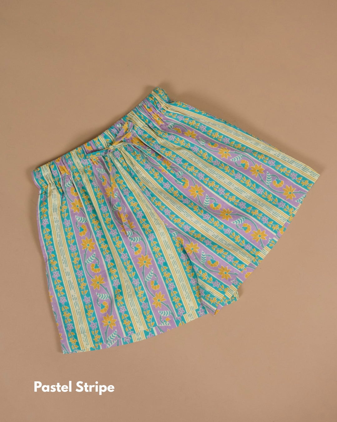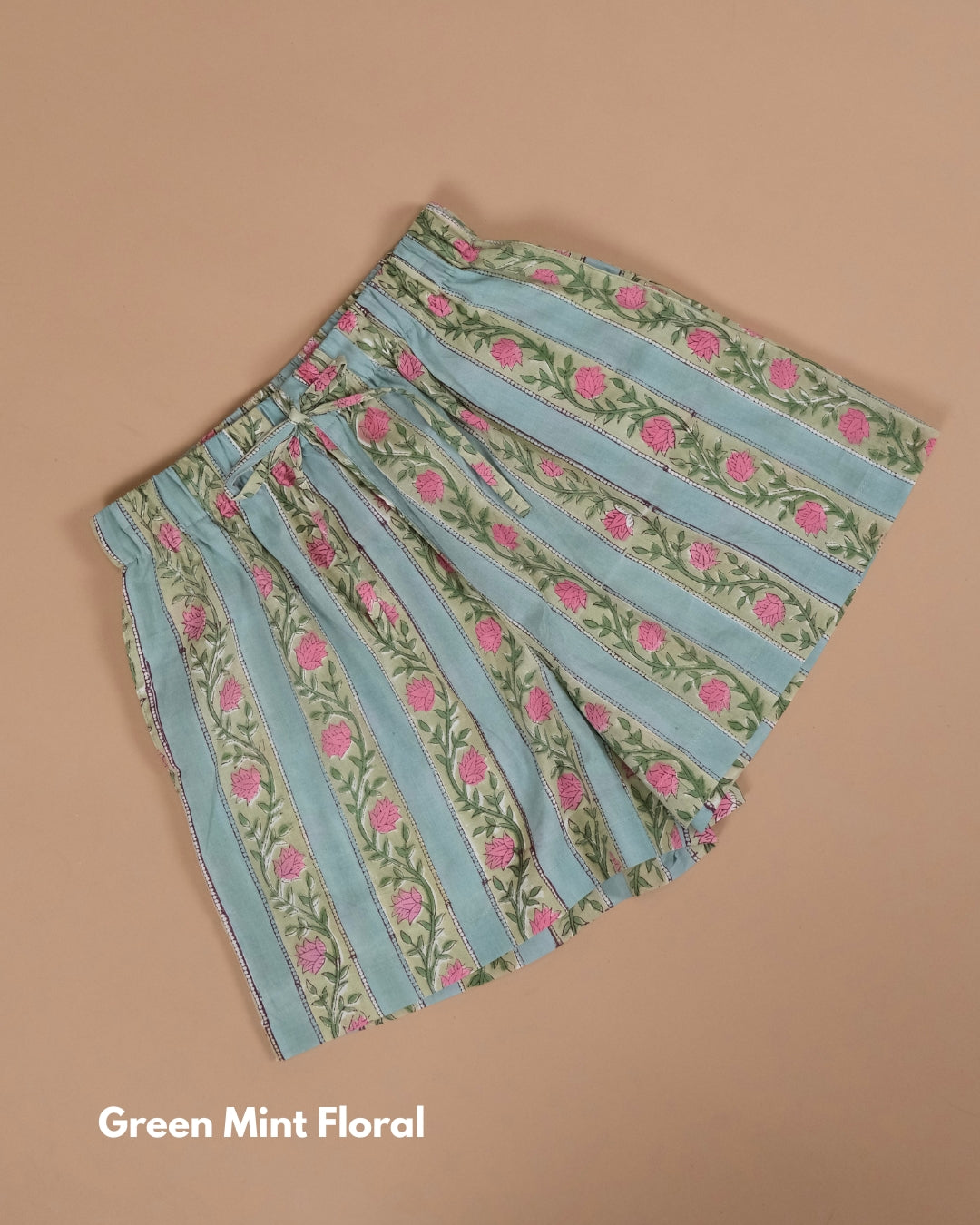 Elastic Waist Cotton Shorts with Side Pockets - Lightweight Breathable Indian Cotton Free Size Waist 25-42" Hip 46" Length 14" Leg Opening 30" Front Rise 14" Model Size 32”/25”/36” H.173cm